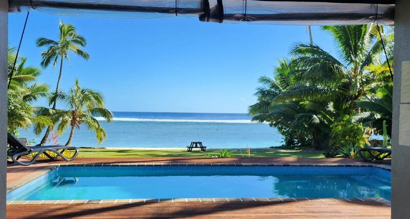 Welcome to this wonderful 3-bedroom beachfront paradise on the South Coast of Rarotonga. Modern & comfortable! A large entertainment kitchen & dining space, comfy open plan lounge that leads to a large beachfront outdoor entertainment area with outdoor lounge & dining and private swimming pool that is only…