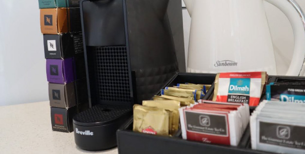 Your kitchenette has a gas hob, microwave, tea & coffee making facilities, and a full sized fridge/freezer. Your barbeque is positioned on the deck near the covered outdoor dining area – perfect!