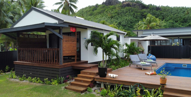 One bedroom, poolside (with the pool and deck separating the Villas) & stunning views of the turquoise lagoon.