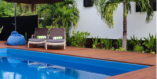 Relax by the pool, or stroll on your private stretch of beach – or perhaps just relax in the lagoon water and enjoy as it is.