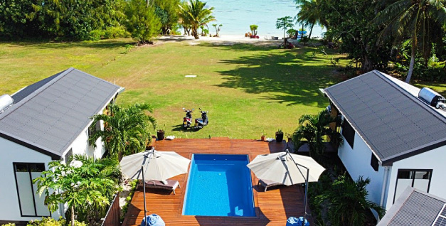 The property owners have gone out of their way to provide full comfort and quality fittings. A real “string to their bow” – they have installed solar panels and a state of the art water recycling system, as their contribution to the eco-conscious tourism movement that allows for both guest comfort and the preservation of the beautiful environment of Aitutaki & Rarotonga.