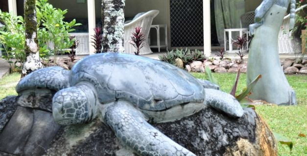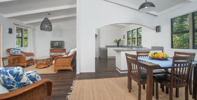 Each is fully furnished with cooling fans, cross flow ventilation, covered verandas and fully equipped kitchens with all necessary equipment including full stove/gas oven, frig/freezer. Two fans cool roomy, double bedrooms (one queen, one split king), one bathroom. All linen and towels supplied. Hairdryer provided. Mid-stay housekeeping service. Laundry facilities, indoor/outdoor dining / TV / expansive grounds /off street parking. Beautiful swimming pool, bbq /dining gazebo and tropical grounds Off street parking Rental cars, scooters and bicycles available. Hotspot 24-hour internet. Welcome food basket on arrival. Walking distance to an excellent beach ( 300m ) Walking distance to provisions shops, bars and Rarotonga’s no 1 cafe – Beluga!. Owners on site help and on call 24 hours.