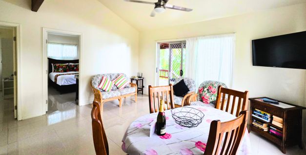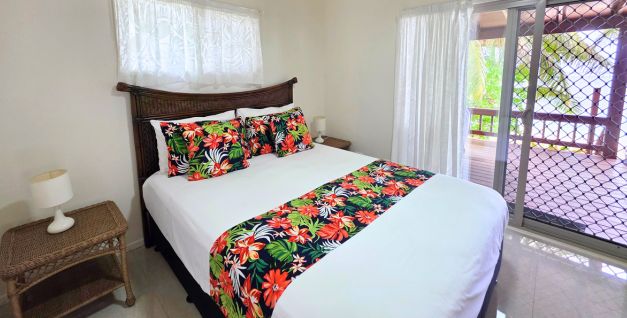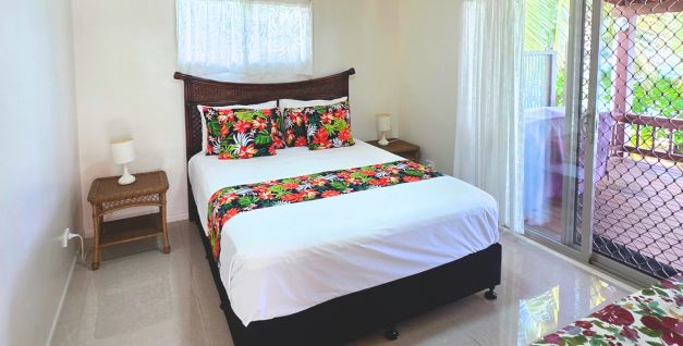 - Bedrooms x 2 – 1x queen bed (master bedroom faces lagoon), 2 x single beds, extra bedding available