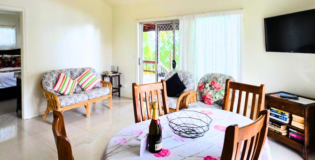 Iro’s Beach House is a compact 2 bedroom house featuring an open plan kitchen and living areas. It has all the amenities and modern features required for a relaxing carefree holiday. The main bedroom and living areas open out onto a covered deck which faces the lagoon. Curl up on the comfortable loungers and take in the wonderful views.