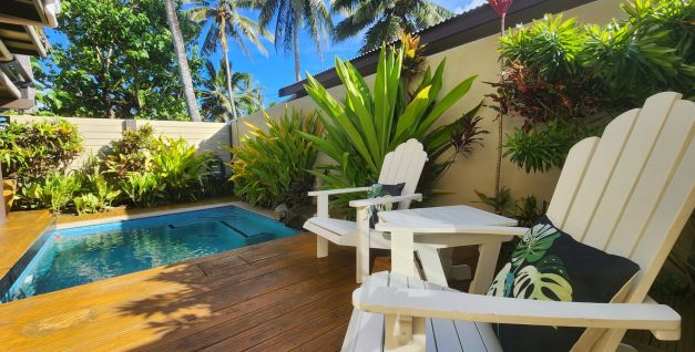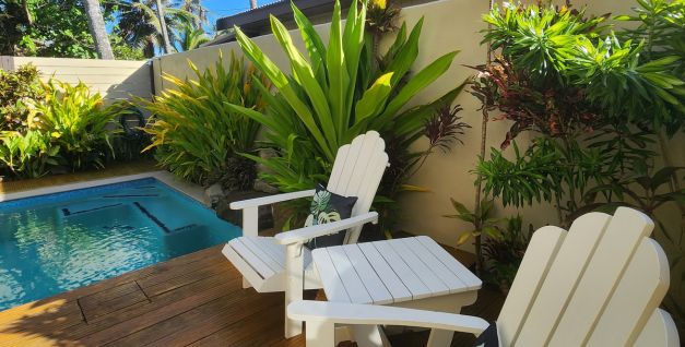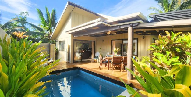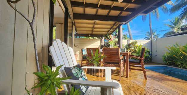 Very smart 3-bedroom/2 bathroom house with plunge pool and private beachside setting. Thereโs room for all the family and more, when you combine this spacious house with the Pacific Breeze Beach House (sleep up to fourteen comfortably across the two houses, which are on the same property). Pacific Breeze Retreat has everything needed for a comfortable & relaxing pacific island experience. Escape the pressures of everyday life with the ocean providing a tranquil backdrop. Pacific Breeze Retreat is located in Tupapa on the east side, close to town. The lagoon is a rocky in this area and is fine for for a dip in the rock pools to cool down (reef shoes recommended), but swimming or snorkelling are not recommended activities in this area. You can swim in your private 4m x 4m pool. Walk the beach, chill out and relax in the private setting, or head into town or to Muri beach to enjoy all Rarotonga has to offer. Children are welcome