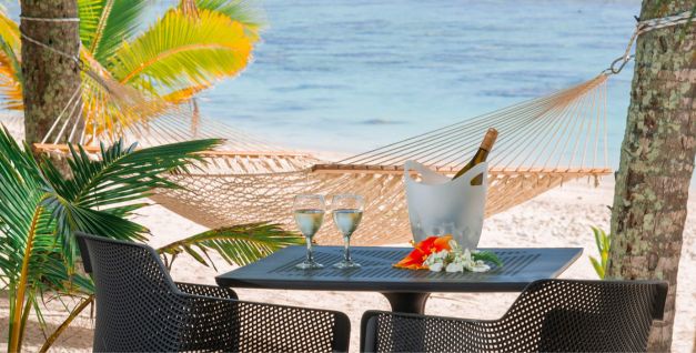 Rooms range from Beachfront, Poolside or Garden Studios for two people, 1 Bedroom Poolside (sleeps up to 3 people), or Two Bedroom Poolside or Beachfront Suites.