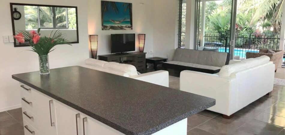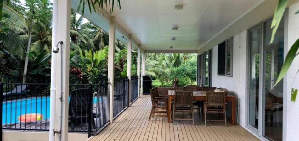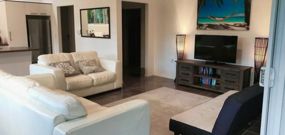 Located on the east side, about 10 minutes from town, and 5 minutes from Muri, Tukaka Garden Villa is well positioned. It’s a modern, spacious villa with a high stud keeping it cool – but also lending a feeling of spaciousness in a large private, peaceful landscaped garden set well back from the main road.