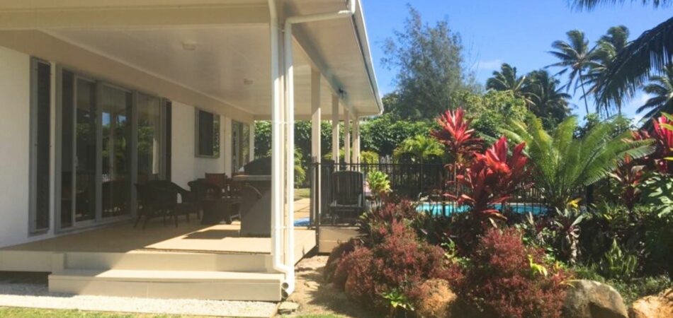 Tukaka Garden Villa is ideal for a family or for 3 couples. It has a 7m x 3.5m fully fenced pool, outdoor furniture & BBQ.