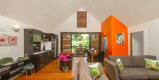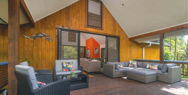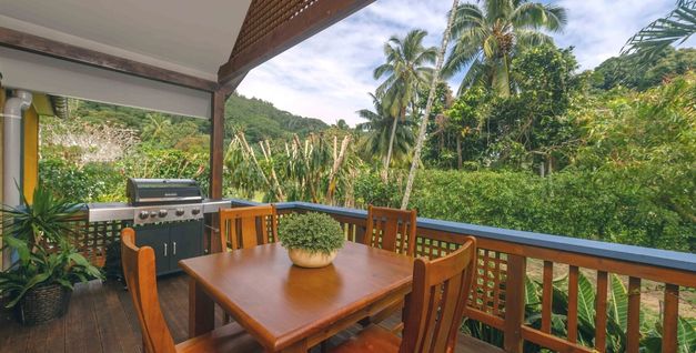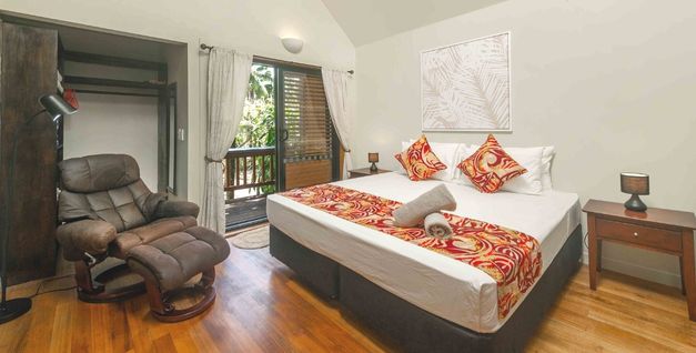 Turtle Villa is a stand-alone villa with two bedrooms, two bathrooms, and a spacious living area, extending out onto a large deck – set in lush tropical gardens.